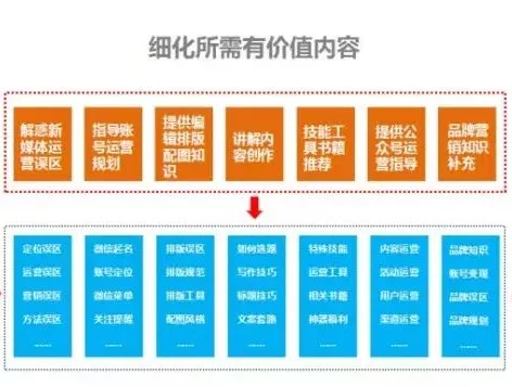 比如一个面向新媒体运营的公众号,它的“用户成长所需知识”以及对应进一步细化的内容就是这样的: